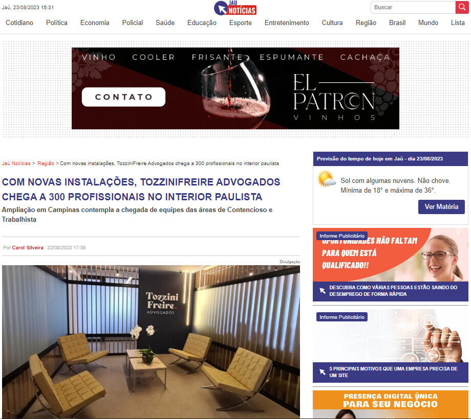Com novas instalações, TozziniFreire Advogados chega a 300 profissonais no interior Paulista