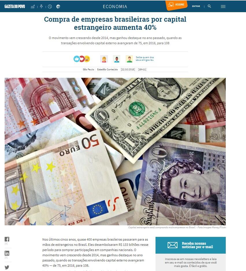Compra de empresas brasileiras por capital estrangeiro aumenta 40%