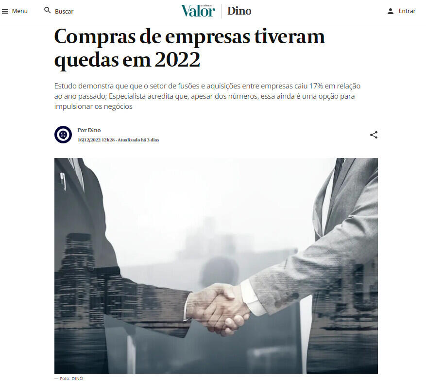 Compras de empresas tiveram quedas em 2022