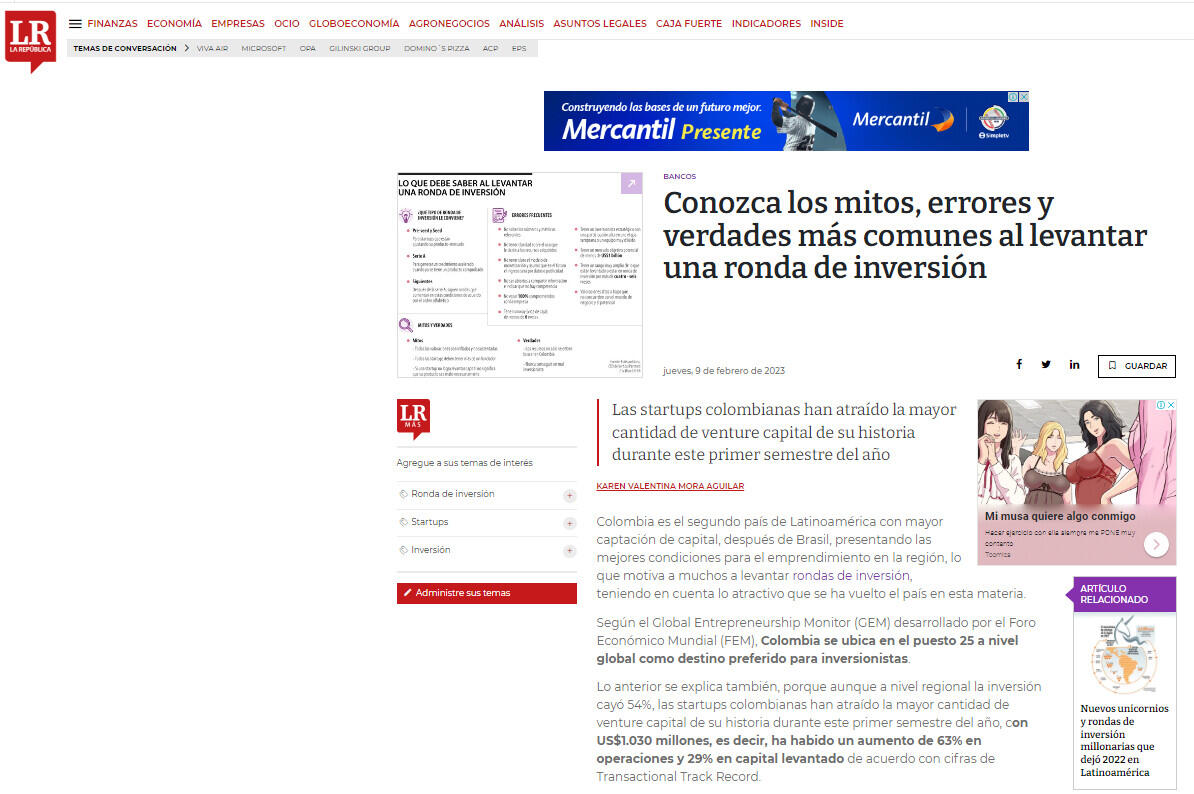 Colombia es el segundo país de Latinoamérica con mayor captación de capital, después de Brasil, presentando las mejores condiciones para el emprendimiento en la región, lo que motiva a muchos a levantar rondas de inversión, teniendo en cuenta lo atractivo que se ha vuelto el país en esta materia.