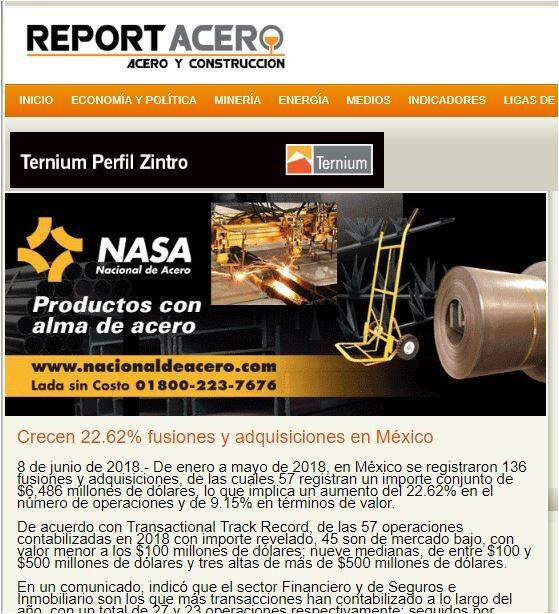De enero a mayo de 2018, en México se registraron 136 fusiones y adquisiciones, de las cuales 57 registran un importe conjunto de $6,486 millones de dólares, lo que implica un aumento del 22.62% en el número de operaciones y de 9.15% en términos de valor.