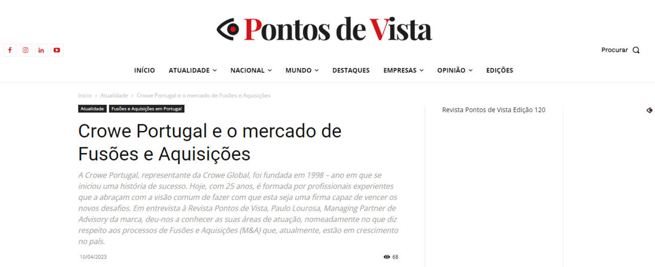 Crowe Portugal e o mercado de Fusões e Aquisições