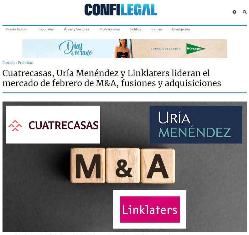 Cuatrecasas, Uría Menéndez y Linklaters lideran el mercado de febrero de M&A, fusiones y adquisiciones