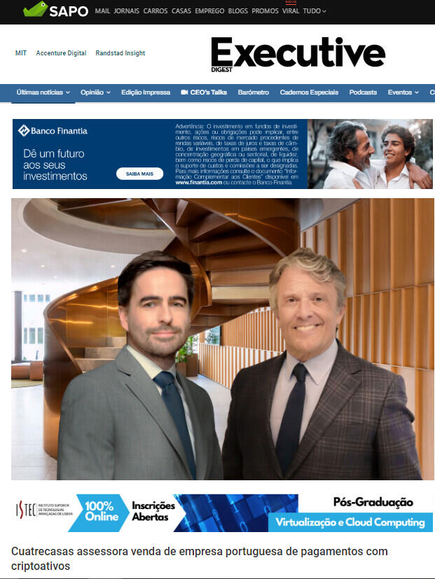De acordo com agências internacionais de informação financeira como a Mergermarket e a Transactional Track Record, a Cuatrecasas é uma das mais ativas sociedades de advogados na assessoria a fusões e aquisições em Portugal e Espanha, e tem estado particularmente ativa no sector dos meios de pagamento, fintech e decentralized finance.