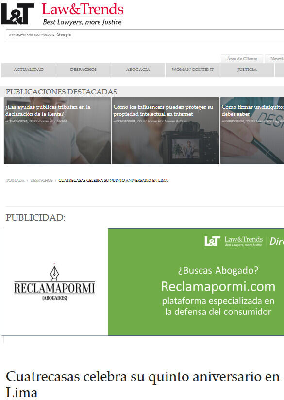 - Cuatrecasas conmemora sus cinco años en Perú como una de las firmas internacionales más activas del país.