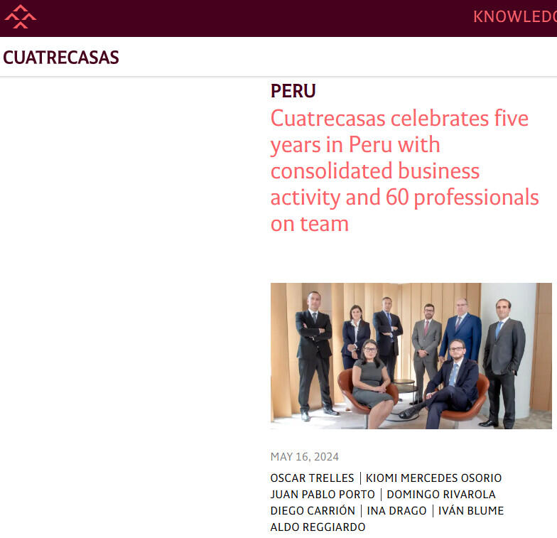 Cuatrecasas celebrates five years in Peru with consolidated business activity and 60 professionals on team