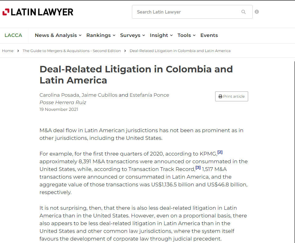 M&A deal flow in Latin American jurisdictions has not been as prominent as in other jurisdictions, including the United States.