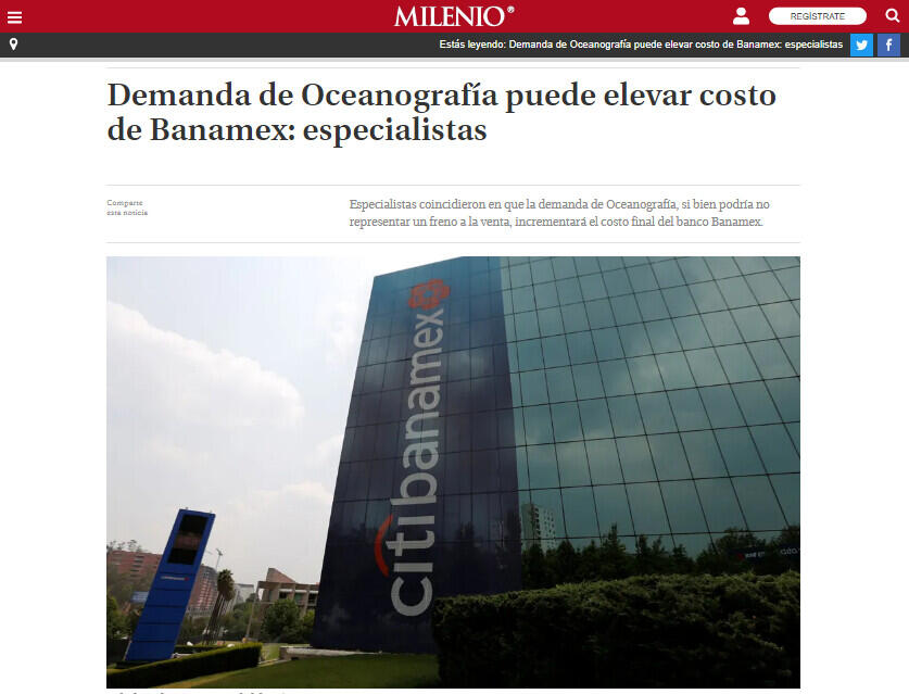 Demanda de Oceanografía puede elevar costo de Banamex: especialistas