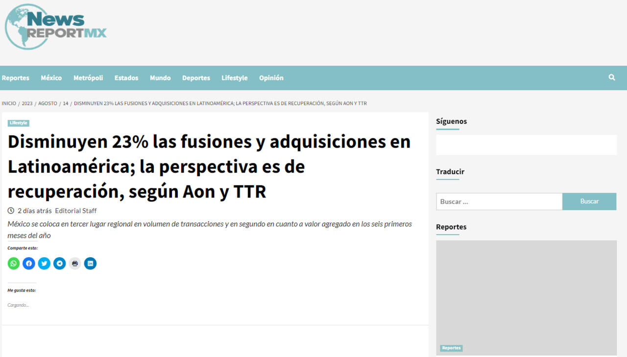 Disminuyen 23% las fusiones y adquisiciones en Latinoamérica; la perspectiva es de recuperación, según Aon y TTR
