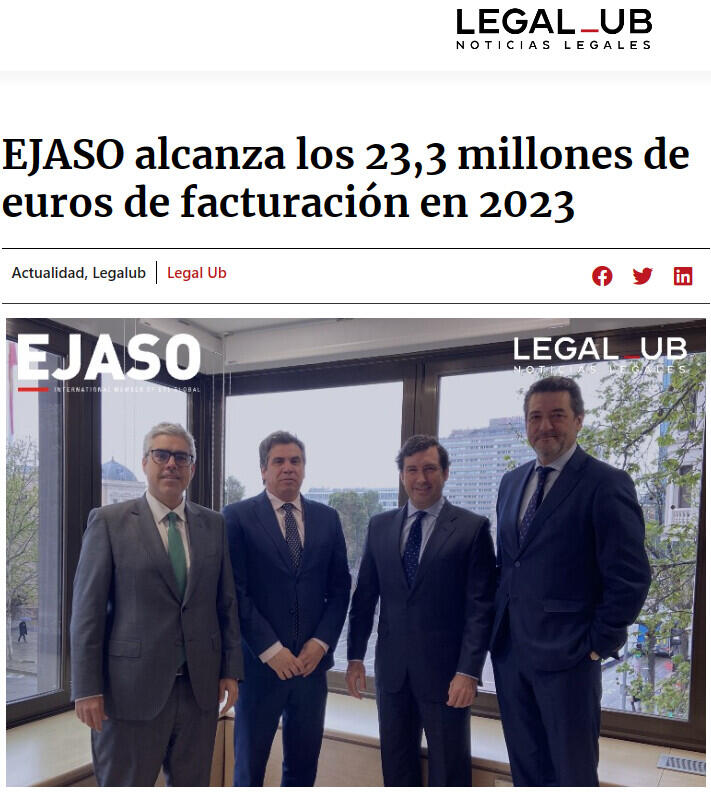 Ejaso, despacho especializado en la abogacía de los negocios para el middle market, ha alcanzado los 23,3 millones de euros de facturación en 2023, un 7,4% más que el año anterior, cuando llegaron a los 21,7 millones de euros. La firma ha duplicado su cifra de negocio en tan solo 7 años.