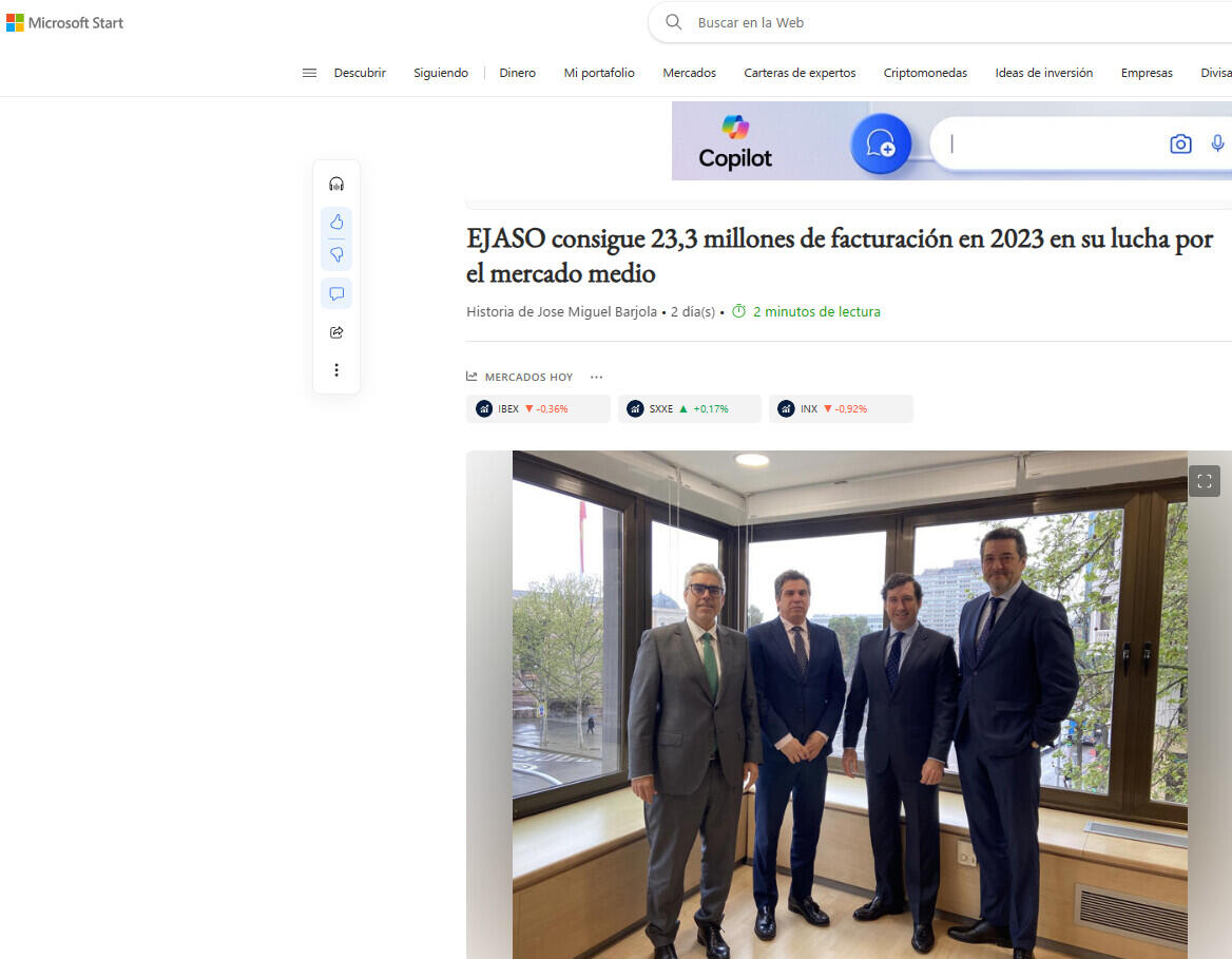 EJASO consigue 23,3 millones de facturación en 2023 en su lucha por el mercado medio