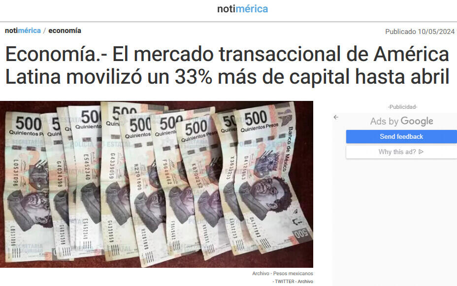 Economía.- El mercado transaccional de América Latina movilizó un 33% más de capital hasta abril