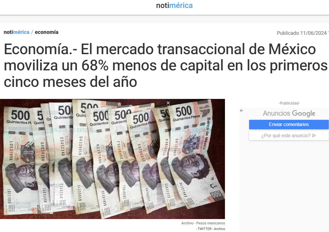 Economía.- El mercado transaccional de México moviliza un 68% menos de capital en los primeros cinco meses del año