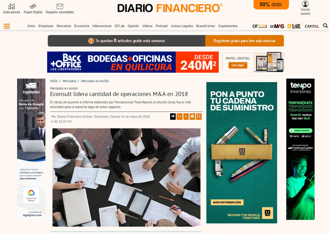 Econsult lidera cantidad de operaciones M&A en 2018