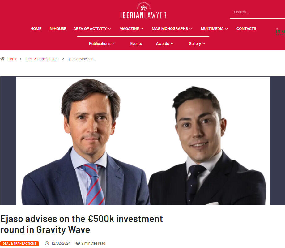 Ejaso has led the legal advice in the strategic investment transaction of half a million euros for Gravity Wave with the aim of ensuring the success and long-term viability of the startup.