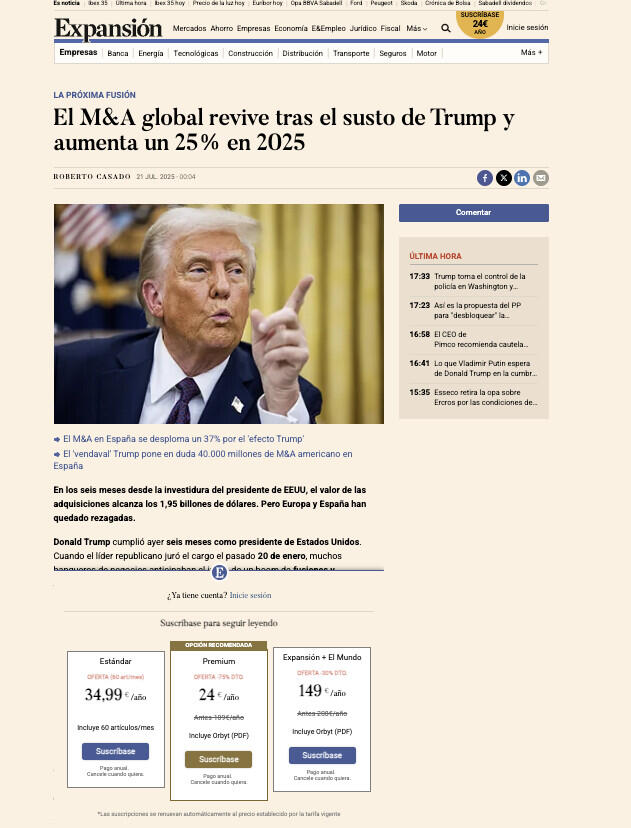 En los seis meses desde la investidura del presidente de EEUU, el valor de las adquisiciones alcanza los 1,95 billones de dólares. Pero Europa y España han quedado rezagadas.