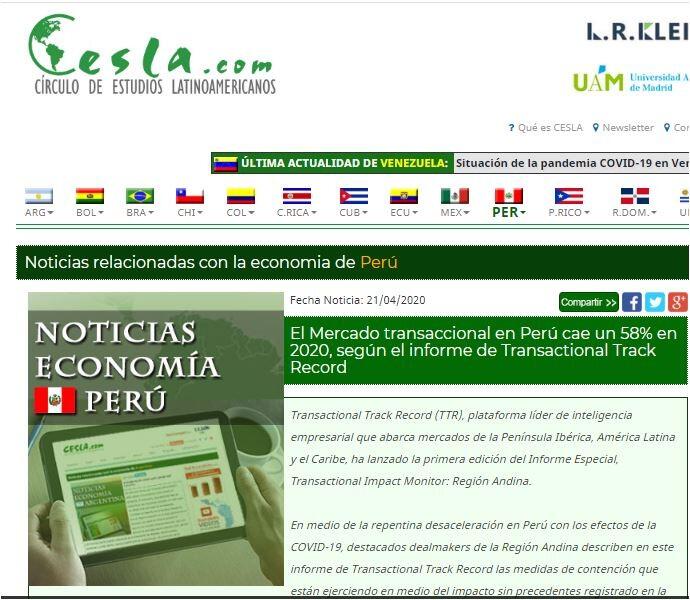 El Mercado transaccional en Perú cae un 58% en 2020, según el informe de Transactional Track Record