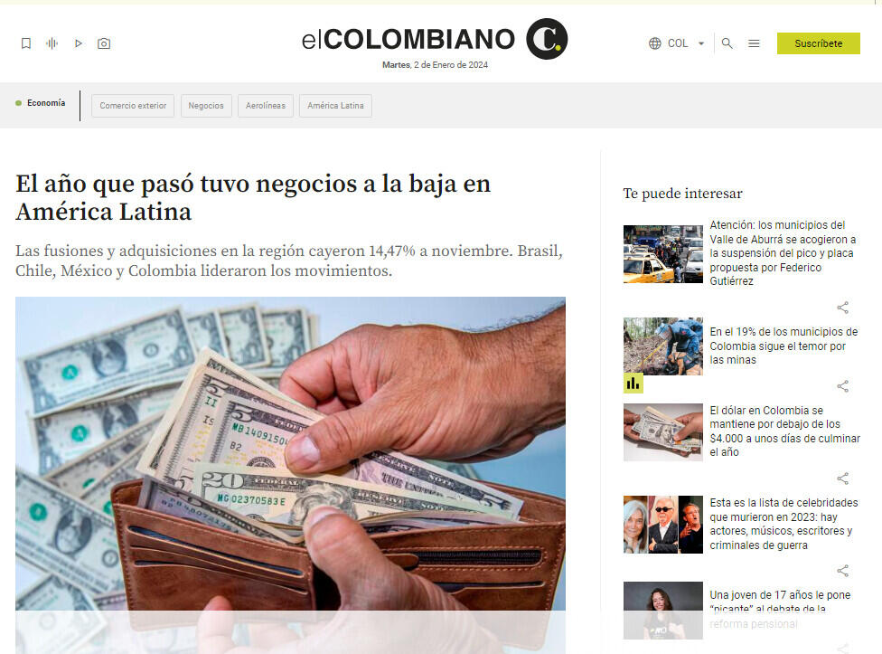 Las fusiones y adquisiciones en América Latina reflejan cuántos negocios han podido expandirse y ganar cuota en el mercado, y cuáles sectores están atrayendo más capital. Sin embargo, estas transacciones dependen de factores económicos específicos, por lo que este 2023 estuvieron en la cuerda floja.