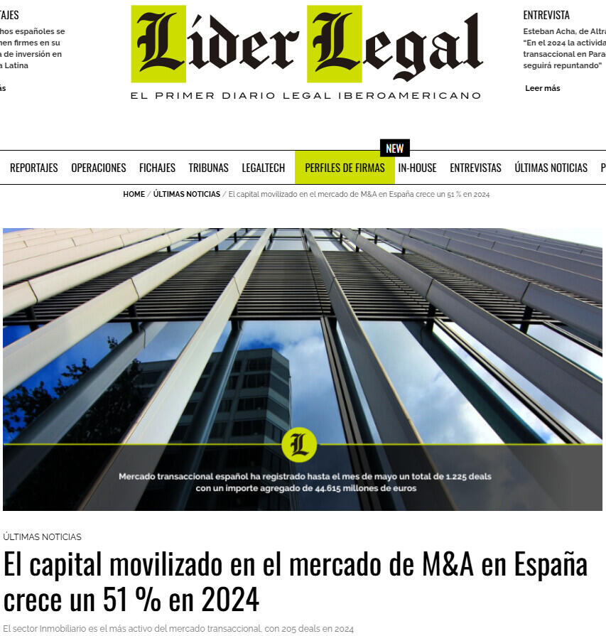 El capital movilizado en el mercado de M&A en España crece un 51 % en 2024