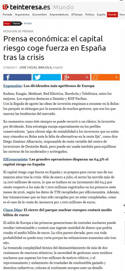 ElEconomista: Las grandes operaciones disparan un 64,5% el capital riesgo en España