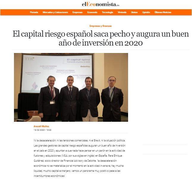Ni la desaceleración, ni las tensiones comerciales, ni el Brexit, ni la situación política. Las grandes gestoras de capital riesgo españolas auguran un buen año de inversión en el país en 2020 y apuntan a que nada hace pensar en un parón en la actividad de fusiones y adquisiciones (M&A, por sus siglas en inglés) en España. Para Enrique Gutiérrez, socio director de Financial Advisory de Deloitte, "la desaceleración económica no se materializa por el momento en la actividad inversora, hay mucha liquidez, mucho capital extranjero, vemos un panorama muy positivo pese a las incertidumbres económicas".