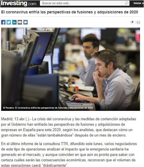 Para Rocamora, la situación provocará una caída en el volumen de fusiones y adquisiciones a corto plazo, como muestra que, por ejemplo, se hayan detenido las transacciones que todavía estaban en proceso en el mes de febrero.