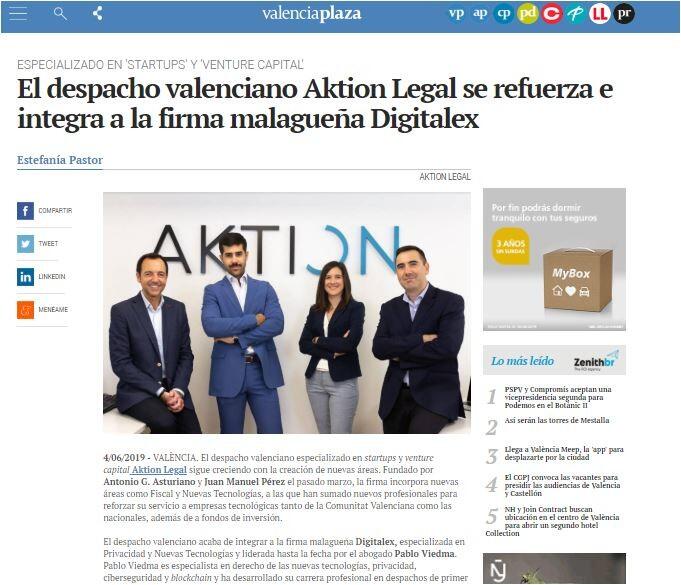 El despacho valenciano Aktion Legal se refuerza e integra a la firma malagueña Digitalex