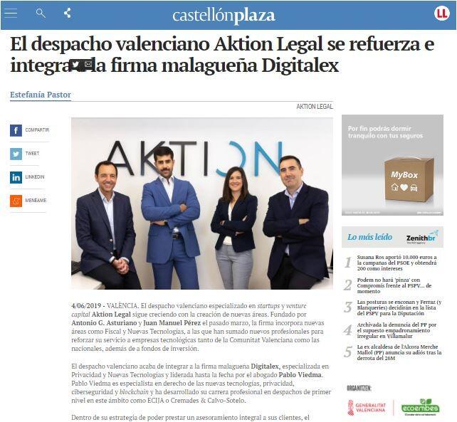 El despacho valenciano Aktion Legal se refuerza e integra a la firma malagueña Digitalex