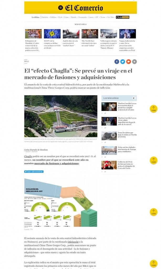 Chaglla podría ser un nombre por el que se recordará este 2017. O, al menos, un nombre por el que se recordará este año en nuestro mercado de fusiones y adquisiciones.