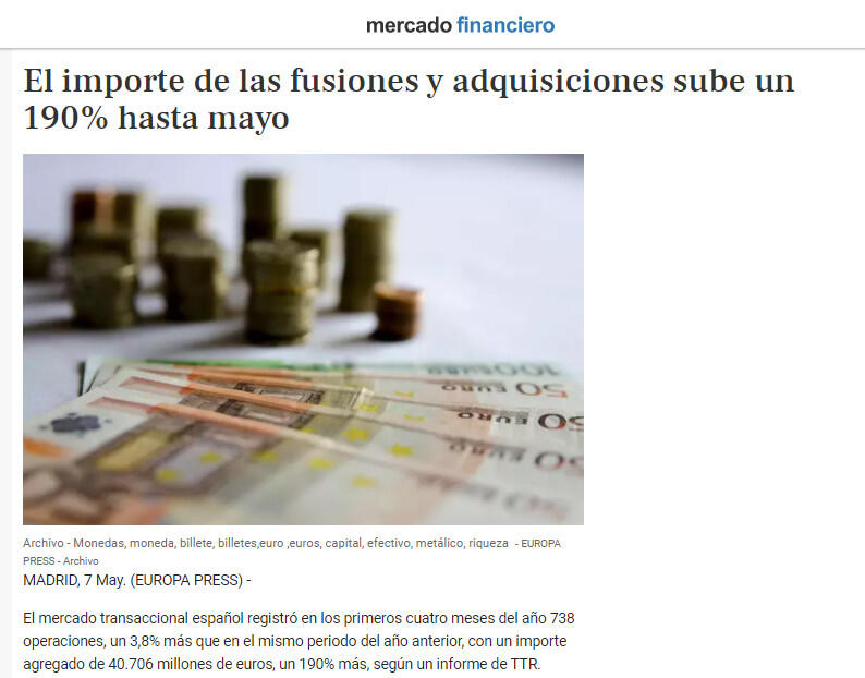 El importe de las fusiones y adquisiciones sube un 190% hasta mayo