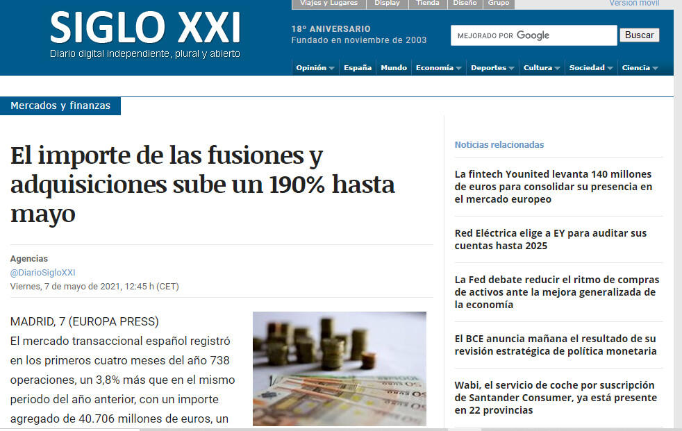 El importe de las fusiones y adquisiciones sube un 190% hasta mayo