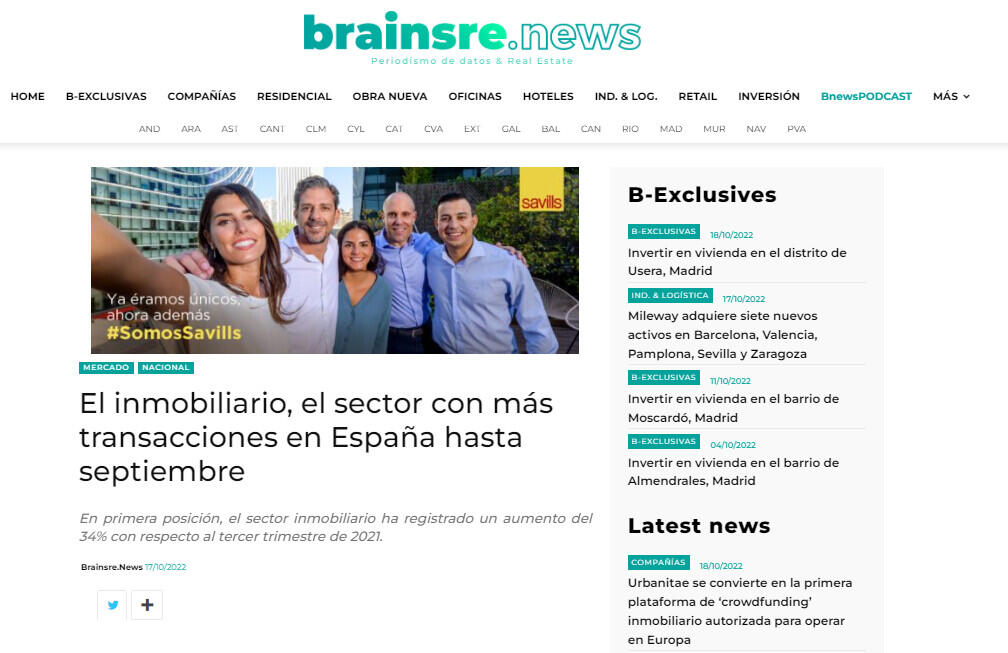 El inmobiliario, el sector con más transacciones en España hasta septiembre