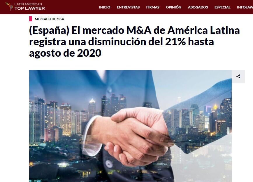 El mercado M&A de América Latina registra una disminución del 21% hasta agosto de 2020