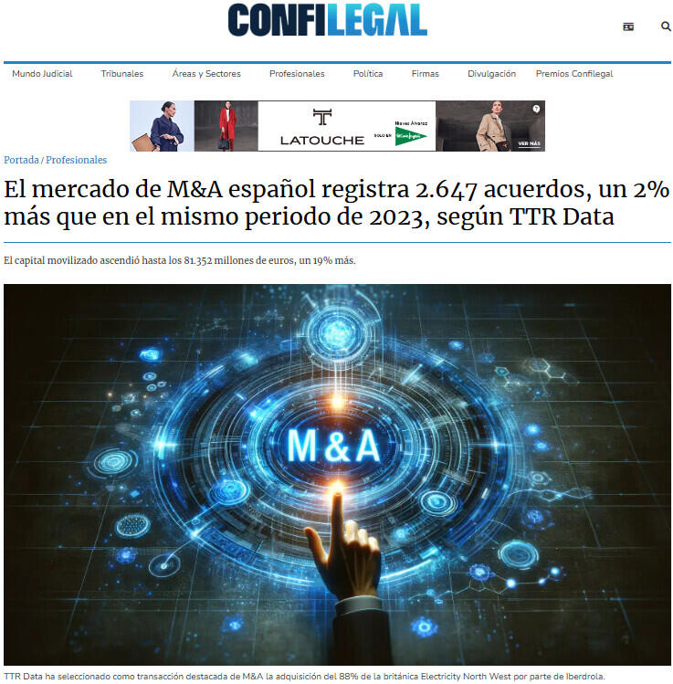 En octubre de 2024, TTR Data ha seleccionado como transacción destacada de M&A la adquisición del 88% de la británica Electricity North West por parte de Iberdrola.