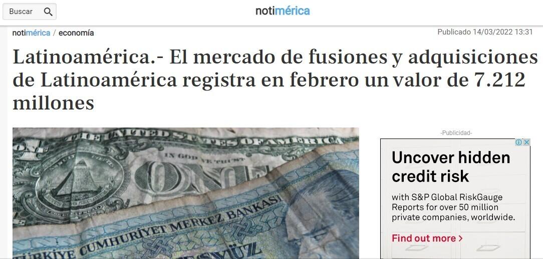 El mercado de fusiones y adquisiciones de Latinoamérica registra en febrero un valor de 7.212 millones