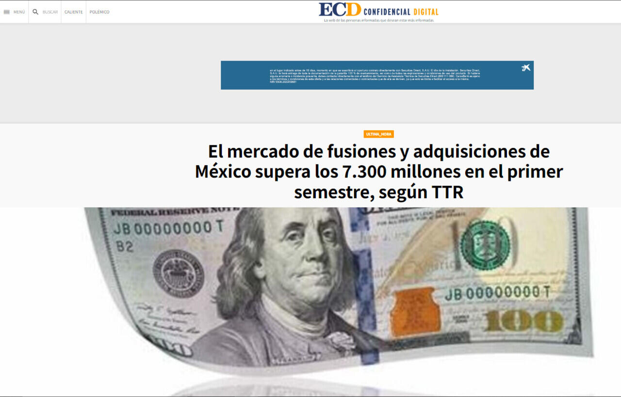 El mercado de fusiones y adquisiciones de México supera los 7.300 millones en el primer semestre, según TTR