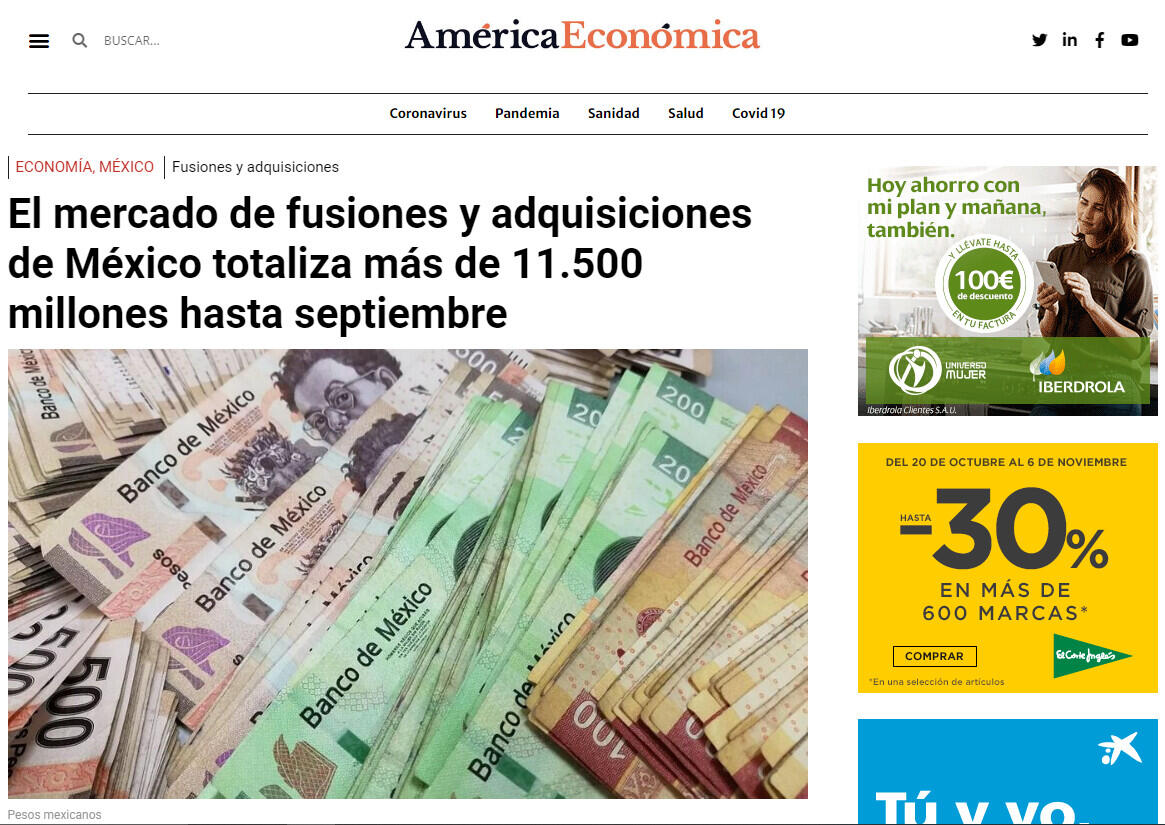 El mercado de fusiones y adquisiciones de México totaliza más de 11.500 millones hasta septiembre