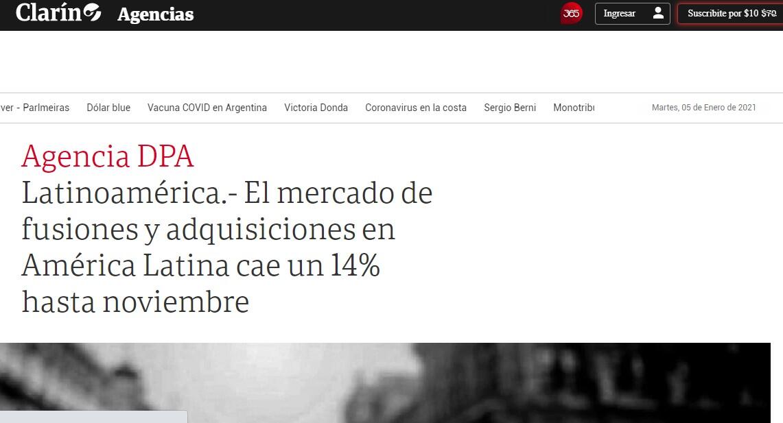 En el mes de noviembre, el mercado transaccional de América Latina registró un total de 168 fusiones y adquisiciones, entre anunciadas y cerradas, por un importe agregado de 8.041,7 millones de dólares (6597,36 millones de euros).
