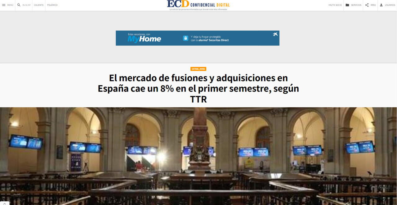 El mercado de fusiones y adquisiciones en España cae un 8% en el primer semestre, según TTR