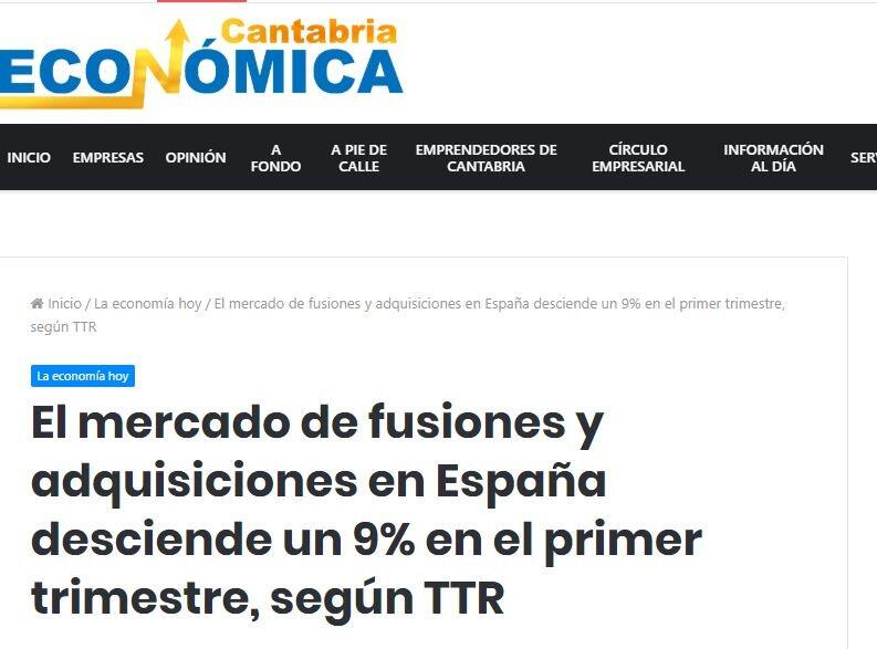 El mercado de fusiones y adquisiciones en España desciende un 9% en el primer trimestre, según TTR