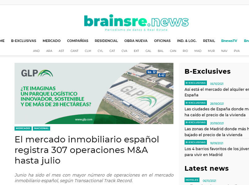 El mercado transaccional en el sector inmobiliario español registró, en el primer semestre de 2021, un total de 307 fusiones y adquisiciones, entre anunciadas y cerradas. Estas operaciones M&A tuvieron un importe agregado de 7.118 millones de euros, según datos de Transactional Track Record.