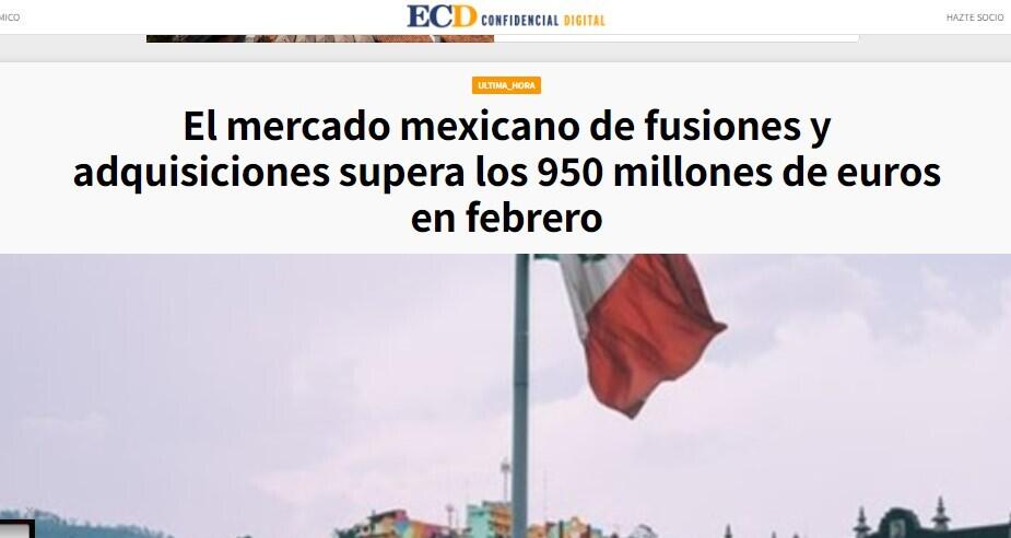 El mercado mexicano de fusiones y adquisiciones supera los 950 millones de euros en febrero