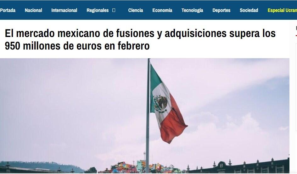 En los dos primeros meses del año, el mercado azteca ha concentrado 52 fusiones y adquisiciones, de las cuales 29 registran un importe conjunto de 1.554 millones de dólares (1.411 millones de euros), un 13% más en volumen y casi cuatro veces más en valor con respecto al mismo periodo de 2021.
