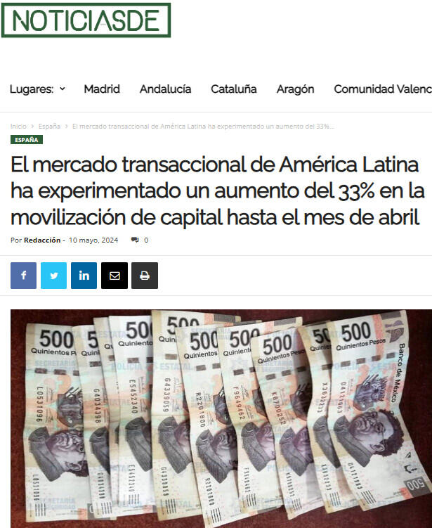 El mercado transaccional de América Latina ha experimentado un aumento del 33% en la movilización de capital hasta el mes de abril