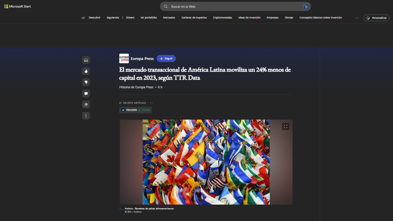 El mercado transaccional de América Latina moviliza un 24% menos de capital en 2023, según TTR Data