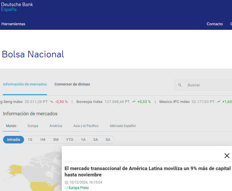 El mercado transaccional de América Latina moviliza un 9% más de capital hasta noviembre