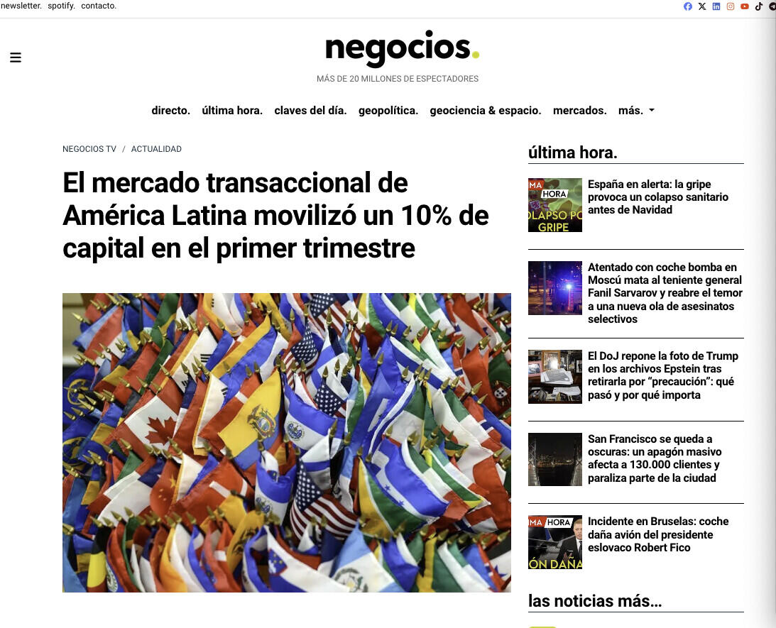 El mercado transaccional de América Latina movilizó un 10% de capital en el primer trimestre