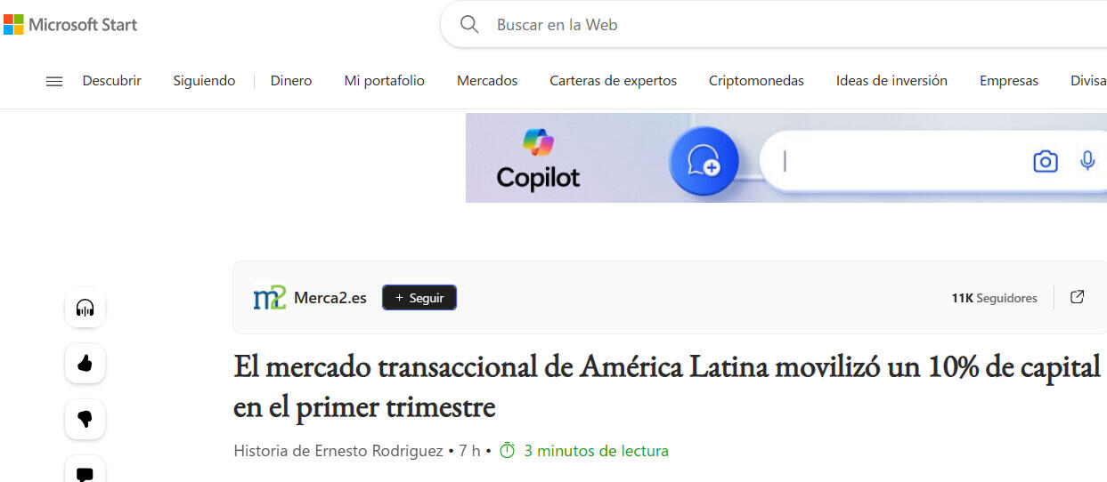 El mercado transaccional de América Latina movilizó un 10% de capital en el primer trimestre
