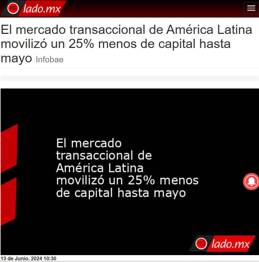El mercado transaccional de América Latina movilizó un 25% menos de capital hasta mayo Infobae