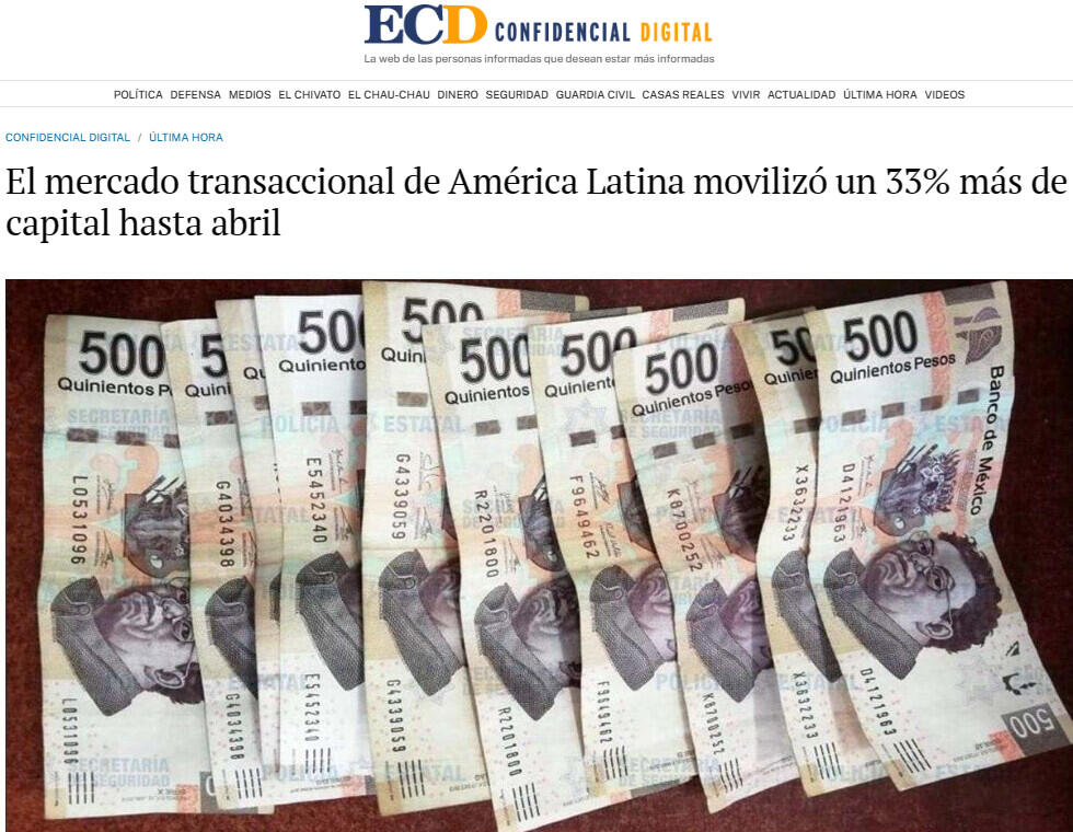 El mercado transaccional de América Latina movilizó un 33% más de capital hasta abril